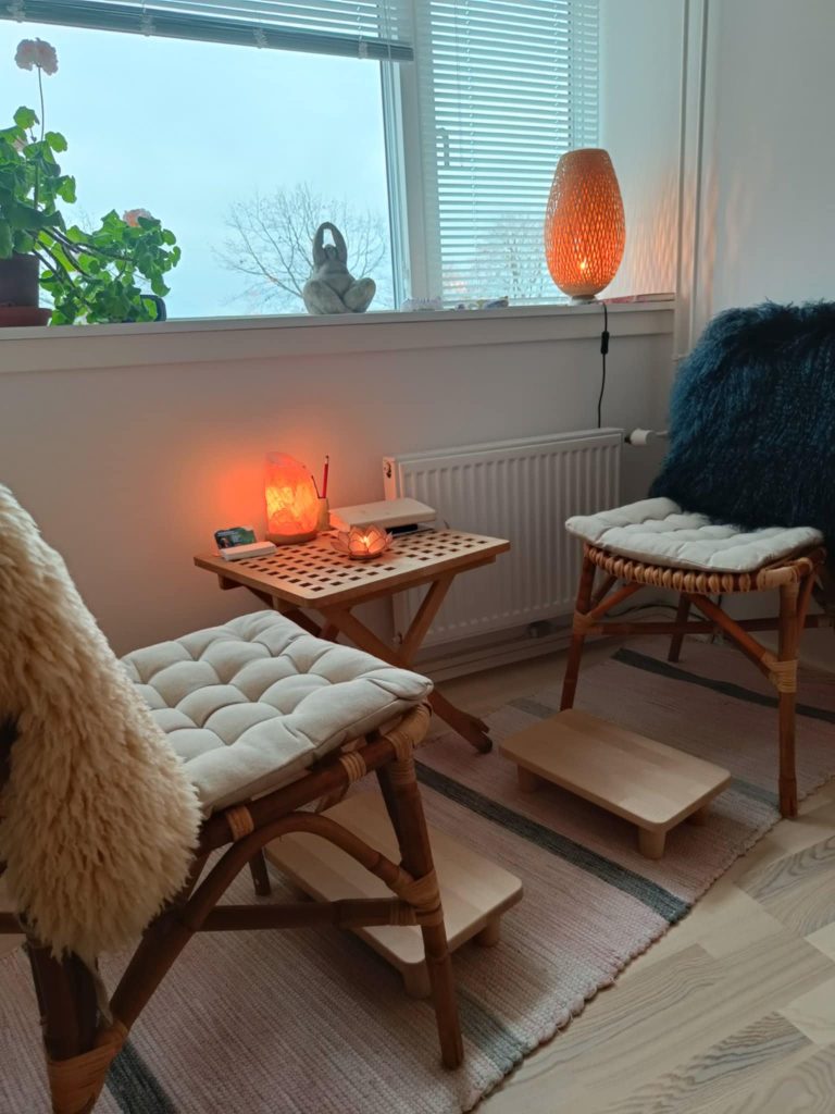 Er det svært at komme hjemmefra, på grund af et lille barn, er fjernhealing eller onlinesamtale også en mulighed.